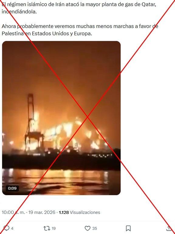 La mayor instalación de gas del mundo, Ras Laffan, en Catar, fue atacada el 18 de marzo de 2025 en el marco de la guerra en Oriente Medio. Desde ese día, en redes sociales se ha compartido más de 1.000 veces un video de un incendio que supone mostrar los estragos de esa ofensiva, atribuida a Irán. Pero la secuencia circula desde días antes, vinculada con otro ataque iraní en Omán.