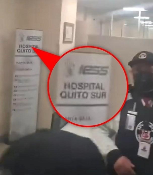 Un análisis de la secuencia permitió identificar que uno de los fotogramas muestra carteles con la leyenda “Hospital Quito Sur” y las siglas “IESS”.