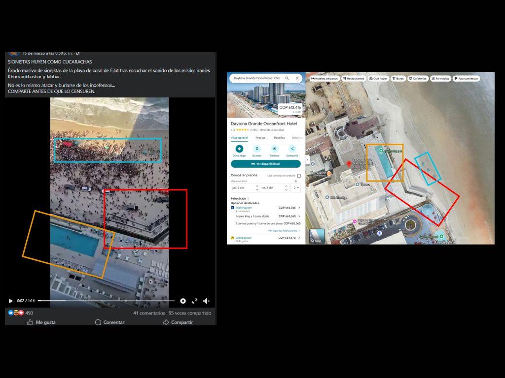Fotografías publicadas en línea e imágenes satelitales de Google Maps muestran una piscina y un patio idénticos a los que aparecen en el video viral y confirman que corresponden a al Daytona Grande Oceanfront Resort.