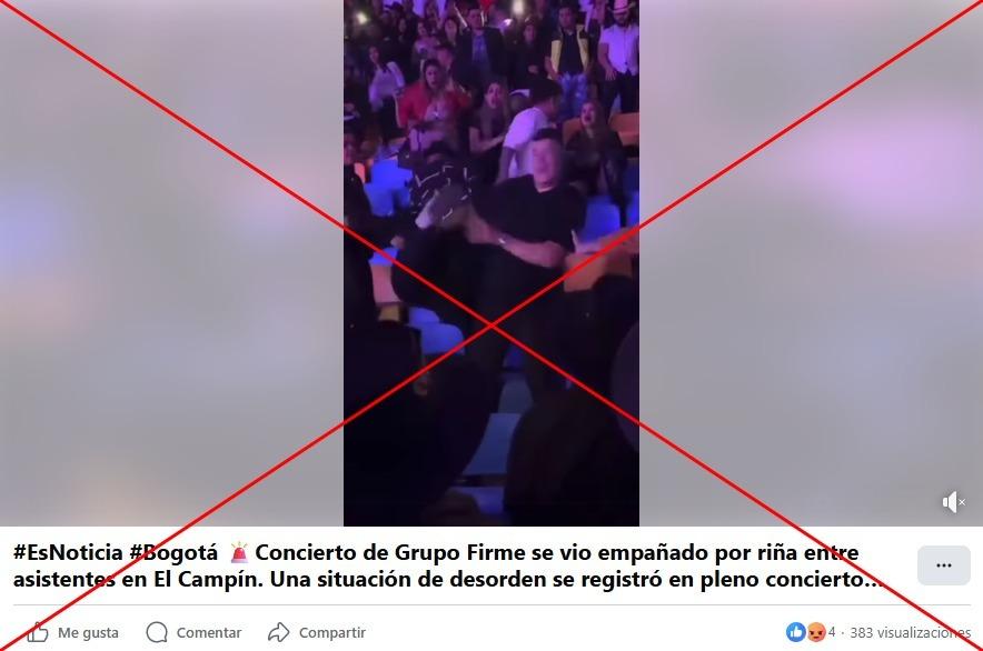 La agrupación de música regional mexicana Grupo Firme anunció en diciembre de 2025 una gira de conciertos por Latinoamérica. Desde el 20 de marzo de 2026, más de 140.000 usuarios de redes sociales compartieron un video de una pelea en medio del recital, supuestamente en el estadio El Campín, en la capital colombiana. Pero las imágenes corresponden a un concierto en Tegucigalpa, Honduras.
