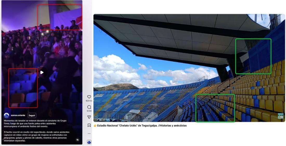 Una búsqueda inversa con Google Lens de uno de los fotogramas condujo a reportes de prensa que informaron que el incidente sucedió durante un concierto de la agrupación el 20 de marzo en el Estadio Nacional Chelato Uclés, en Tegucigalpa, Honduras (1, 2, 3).