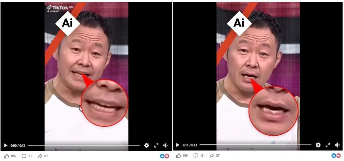 El metraje viral, además, presenta inconsistencias muy comunes de secuencias generadas con IA. La voz no suena natural, sino robotizada, y la forma de sus dientes cambia conforme avanza el video.