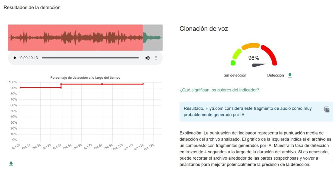 AFP Factual realizó otro estudio con la misma herramienta pero del audio del video, donde se determinó que hay una probabilidad del 96% de que fue creado artificialmente.