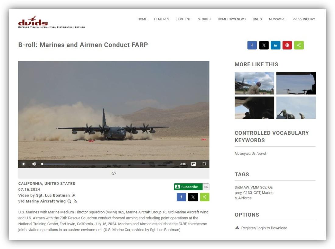 Una búsqueda inversa en Google con fotogramas clave de la secuencia llevó al mismo metraje publicado en julio de 2024 en la página oficial del Servicio de Distribución de Información Visual de Defensa (DVIDS, por sus siglas en inglés) del Pentágono. También fue compartido por otros sitios web militares oficiales, como el Comando de Innovación de la Reserva del Ejército de Estados Unidos.