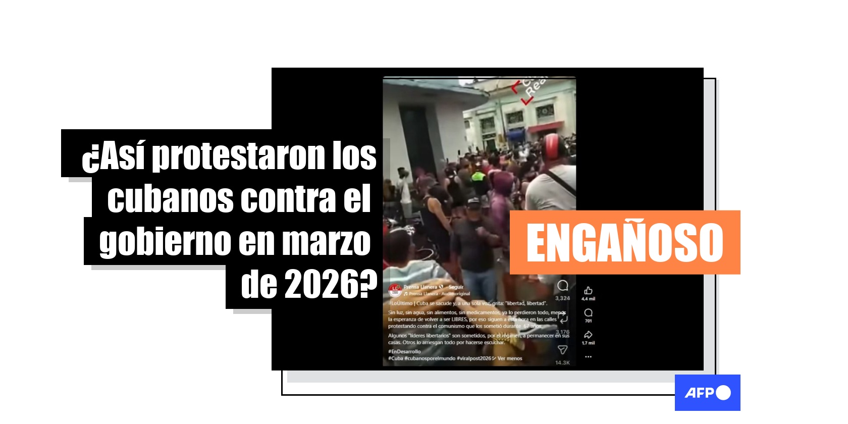 Desde enero de 2026, Cuba sufre un embargo petrolero impuesto por Estados Unidos, lo que ha provocado cortes de energía diarios y una grave escasez de combustible. En marzo, un video de una protesta en contra del gobierno de la isla se ha compartido más de 10.000 veces en redes sociales como si fuera reciente. Pero las imágenes son de julio de 2021, como se pudo constatar con otras secuencias que datan de ese entonces.