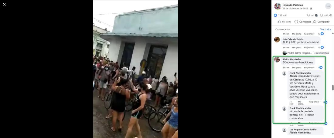 Una búsqueda inversa en Google de uno de los fotogramas llevó al mismo video, invertido horizontalmente, y publicado en diciembre de 2025. Allí, uno de los usuarios comenta “El 11 j. 2021 prohibido olvidar”; otro indica, “Es de la protesta general del 11 J hace cuatro años”.