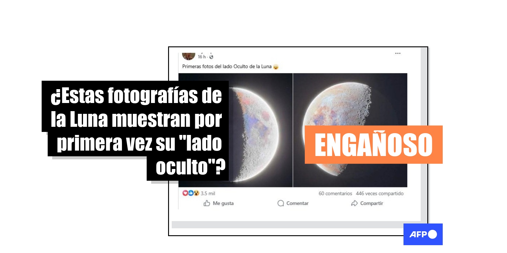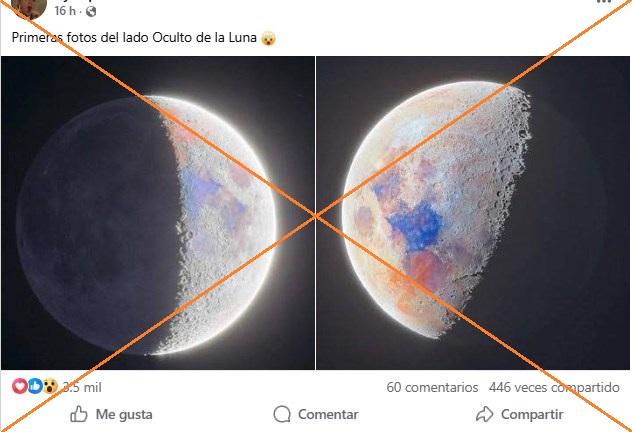 “Primeras fotos del lado Oculto de la Luna”, señala una publicación con dos fotografías en Facebook.