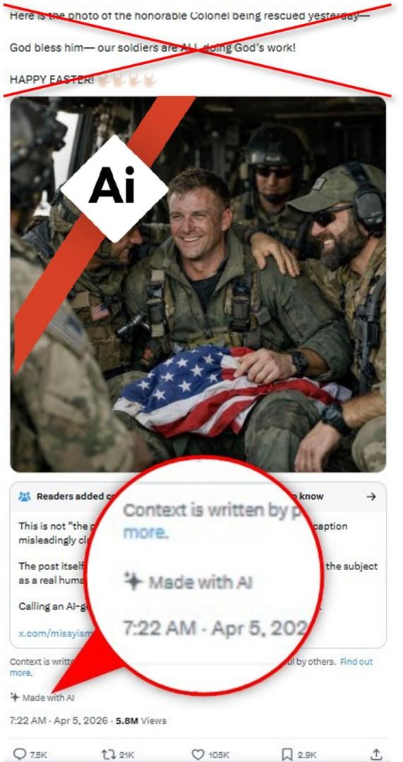 Una supuesta foto de un aviador rescatado por Estados Unidos en Irán fue creada con IA