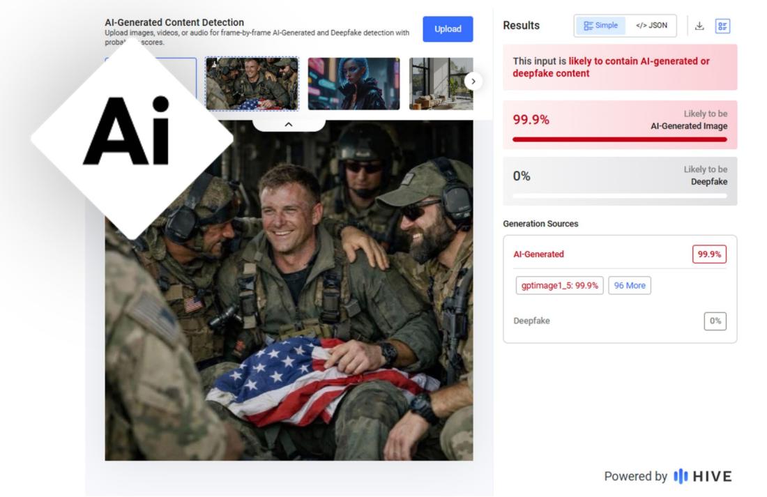 Un análisis con la herramienta de detección de IA Hive Moderation apuntó un 99% de probabilidades de que se trate de un contenido sintético.