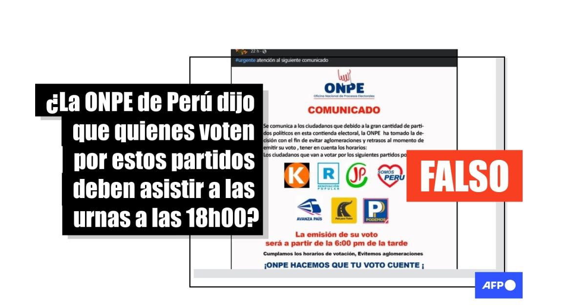 Es falso que la ONPE de Perú haya establecido el voto para algunos partidos desde las 18h00