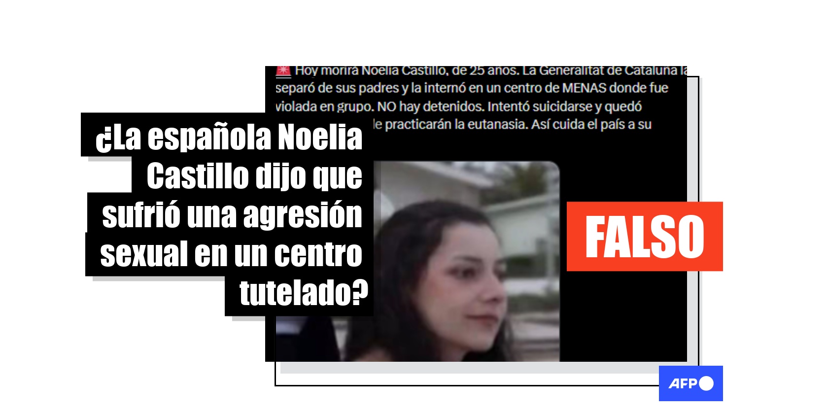 Una entrevista en televisión de la española Noelia Castillo, con paraplejia, antes de su eutanasia en marzo de 2026, fue aprovechada para la difusión de desinformación en redes sociales sobre varios detalles del pasado de la joven. En concreto, 24.000 usuarios compartieron que Noelia había sido agredida sexualmente durante su etapa en un centro tutelado por menores extranjeros. Pero Noelia no dijo que ocurriera en un centro tutelado ni mencionó la nacionalidad de los autores. La Generalitat de Cataluña, encargada de su tutela cuando era menor, dijo que no había registro alguno de los hechos.