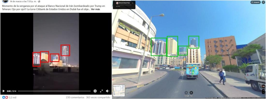 Sin embargo, el vídeo viral no corresponde al ataque iraní a un banco de Dubái, sino a un edificio residencial en Baréin.