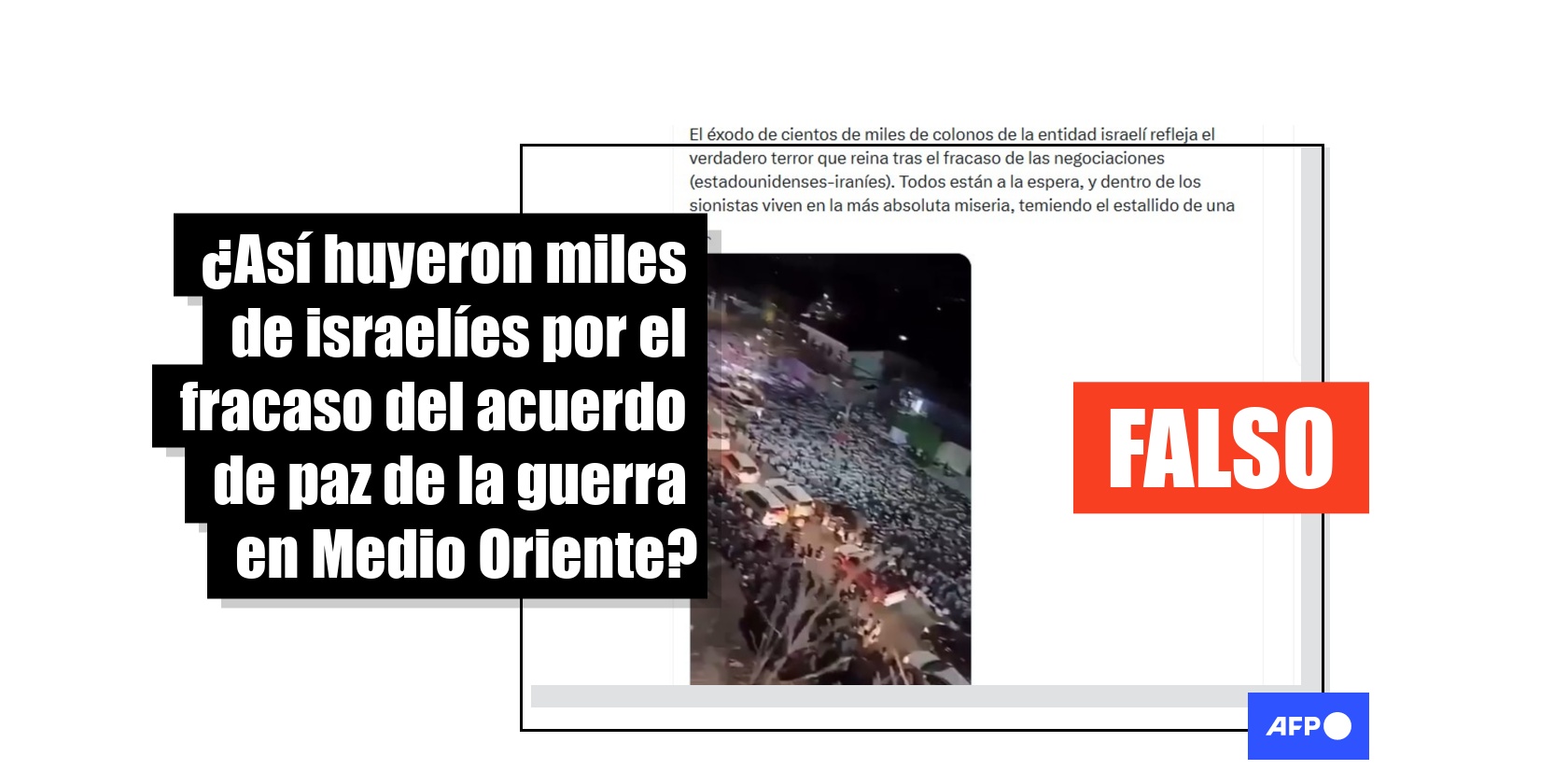 Tras el fracaso de las negociaciones para poner fin a la guerra en Oriente Medio entre Estados Unidos e Irán en abril de 2026, circula un video en el que se ve a una multitud avanzando por una carretera. La secuencia ha sido compartida cientos de veces en redes sociales con la afirmación de que muestra la huida de cientos de miles de personas de Israel. Sin embargo, eso es falso. El video muestra a fieles cristianos saliendo de una misa ofrecida por el papa Francisco en Timor Oriental, en septiembre de 2024.