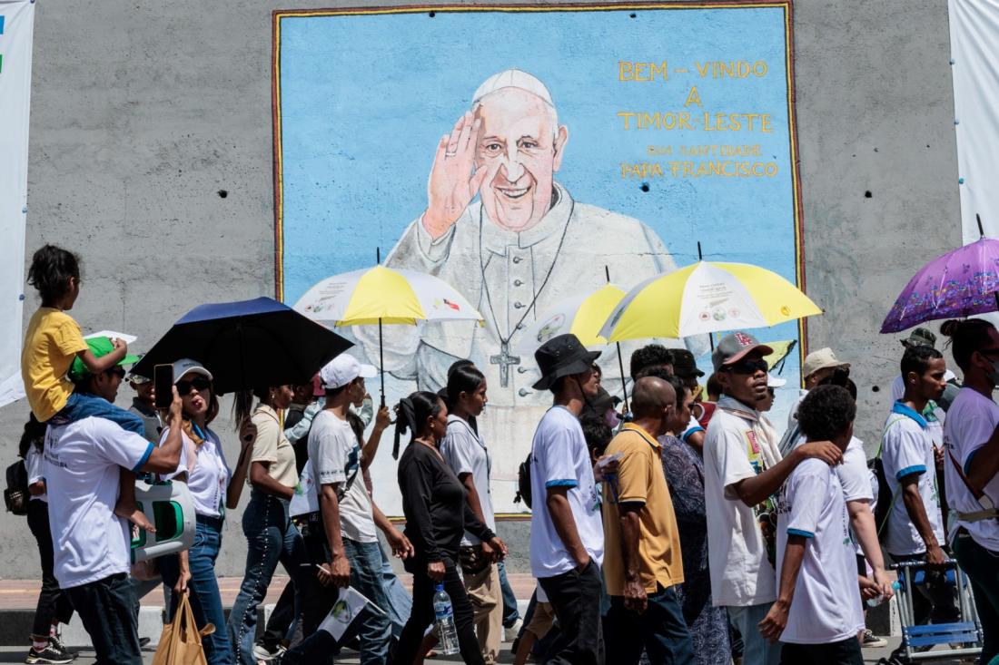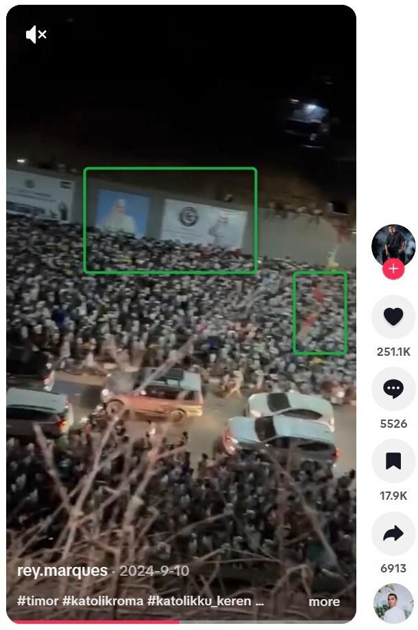 En el video publicado en TikTok se distingue la bandera de Timor Oriental en las farolas y un cartel del pontífice.