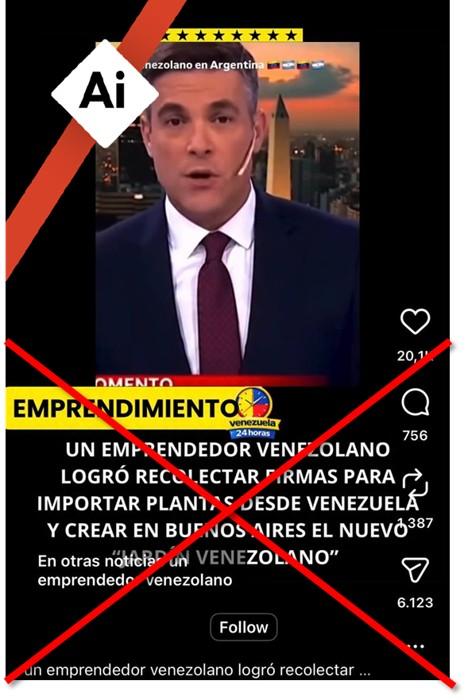 Argentina es el sexto país con mayor recepción de migrantes venezolanos del mundo, con más de 185.000, quienes se concentran en la Ciudad Autónoma de Buenos Aires y la provincia homónima. En este contexto, desde el 7 de abril de 2026, circula en redes sociales un video de un supuesto noticiero que anuncia la instalación de un parque con árboles importados desde Venezuela en la capital argentina. Sin embargo, la grabación, compartida más de 9.000 veces, fue generada con inteligencia artificial (IA).