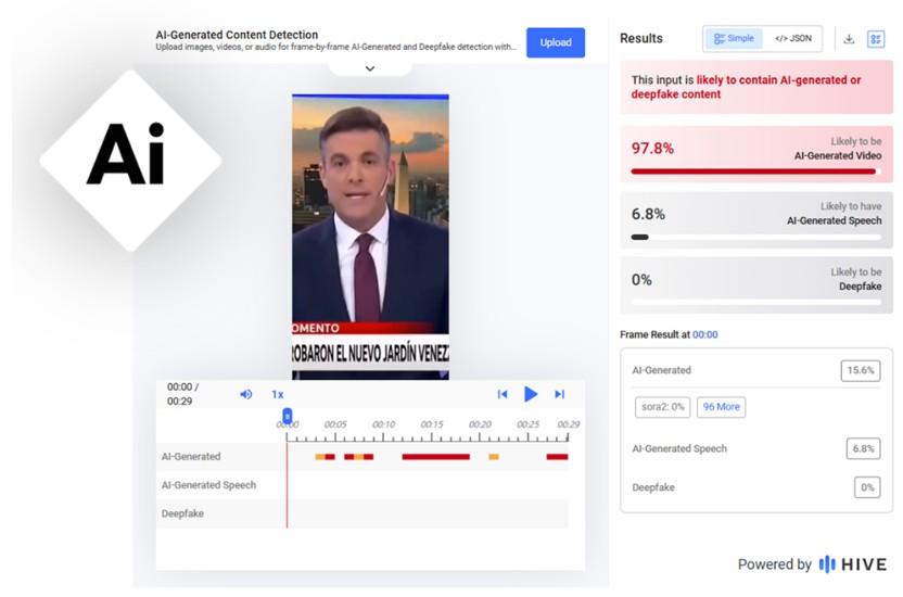Un análisis de la publicación viral con los detectores de IA Hive Moderation y Hiya, de InVID WeVerify, apuntó que tanto las imágenes como el audio fueron hechos con esa tecnología.