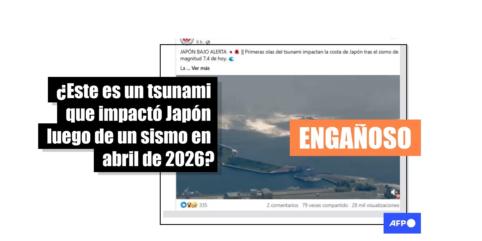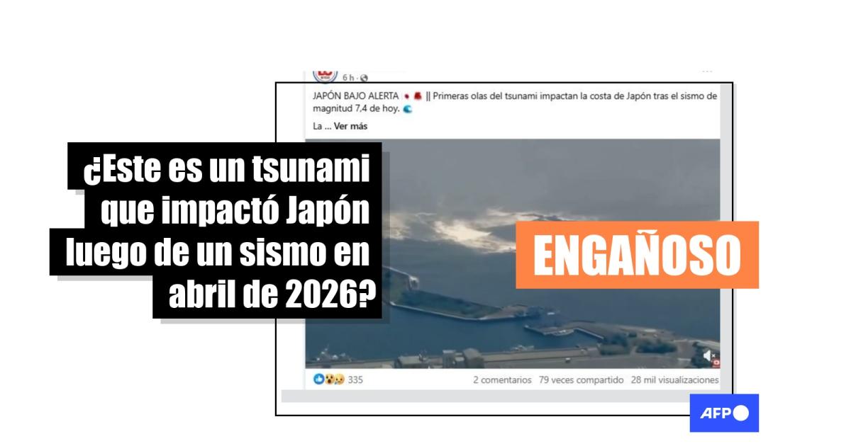 Un terremoto de magnitud 7,7 sacudió la costa norte de Japón y encendió la alerta de tsunami, el 20 de abril de 2026. Horas después, más 5.000 usuarios en redes sociales difundieron un video de “las primeras olas del tsunami” que supuestamente impactaron la isla. Pero aunque la secuencia sí fue grabada en Japón, corresponde al efecto de un sismo de magnitud 8 registrado en la península rusa de Kamchatka en julio de 2025. En el episodio más reciente, las autoridades reportaron olas de 80 centímetros de altura y no causaron daños graves.