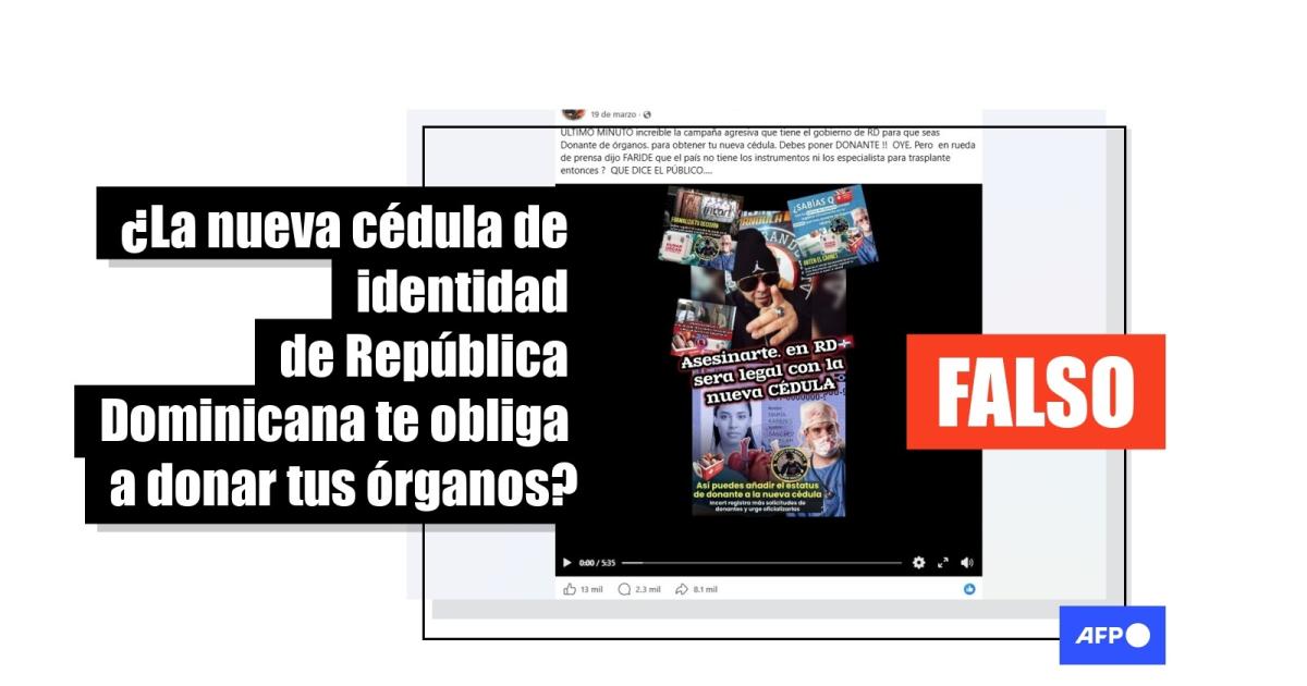 En abril de 2026 inició la renovación de cédulas de identidad y electoral de República Dominicana. Semanas antes, comenzaron a circular publicaciones compartidas más de 18.000 veces en redes sociales que afirman que la nueva identificación permite la donación de órganos contra la voluntad de los ciudadanos. Sin embargo, aunque en las nuevas credenciales se puede registrar esa información, se requiere permiso previo del donante y un carnet o certificado emitido por el Instituto Nacional de Coordinación de Trasplantes. La legislación dominicana prohíbe la donación sin autorización de la persona.