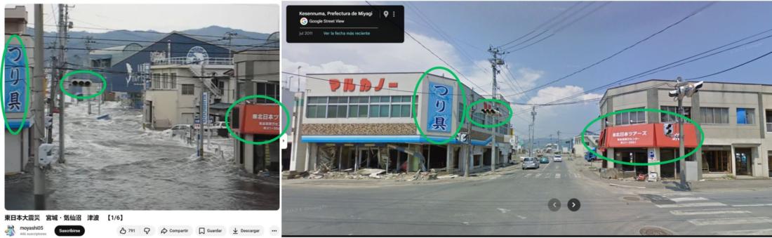 Una búsqueda inversa en Google de un fotograma de la secuencia arrojó una publicación compartida en YouTube el 25 de marzo de 2011, con imágenes idénticas. “Gran Terremoto del Este de Japón: Kesennuma, Miyagi — Tsunami [1/6]”, se titula el metraje, traducido al español del japonés.