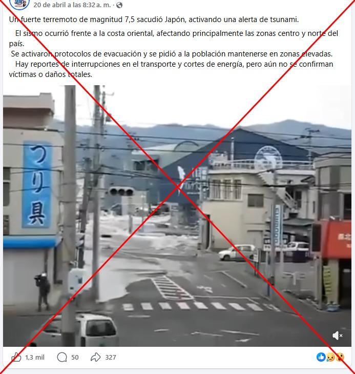Un sismo de magnitud 7,7 afectó el norte de Japón el 20 de abril de 2026, y posteriormente se emitió una alerta por un posible tsunami en la zona. En este contexto, en redes sociales circula un video que mostraría el maremoto alcanzar y arrasar una ciudad. Pero el metraje, que se ha compartido más de 500 veces, es una grabación del tsunami de 2011 en ese país.