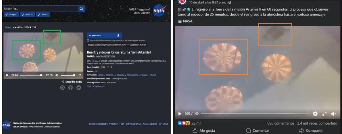 Una búsqueda inversa en Google de uno de los fotogramas del video viral condujo a la misma grabación publicada en 2022 en el portal especializado space.com. “La nave espacial Orion de la misión Artemis 1 de la NASA reingresó en la atmósfera terrestre el 11 de diciembre de 2022”, señala la descripción, “tras su exitosa misión alrededor de la Luna. Mira aquí 25 minutos de imágenes del reingreso y de los paracaídas, aceleradas en una secuencia de tiempo comprimido de 1 minuto.”