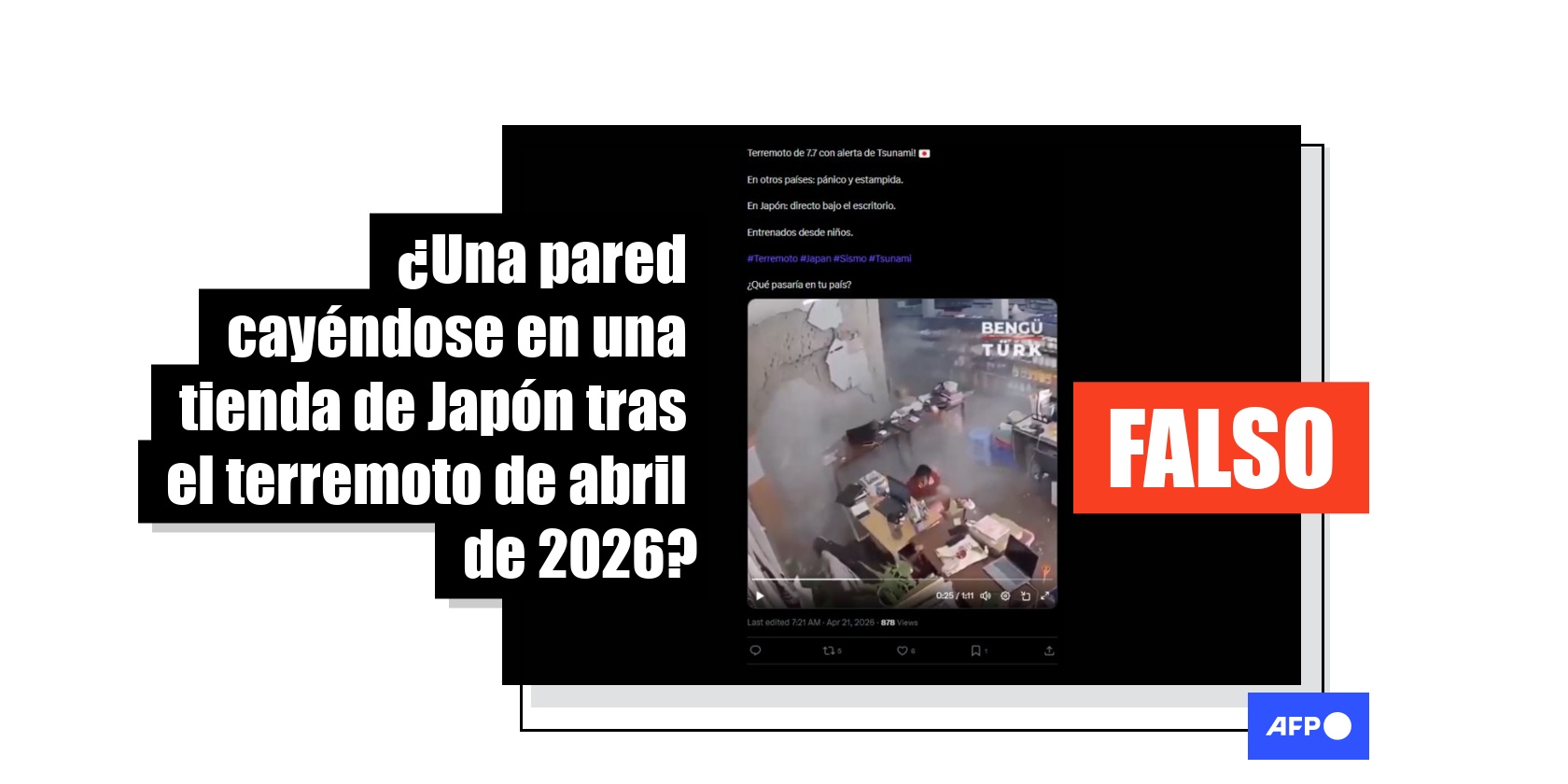 Un terremoto de magnitud 7,7 sacudió el norte de Japón el 20 de abril de 2026, dejando seis heridos y daños estructurales. En ese contexto se ha compartido decenas de veces en redes sociales un video en el que se observa a varios trabajadores resguardándose en una tienda durante el temblor mientras una pared comienza a colapsar. Sin embargo, el metraje fue grabado en marzo de 2025, durante un sismo en Birmania.