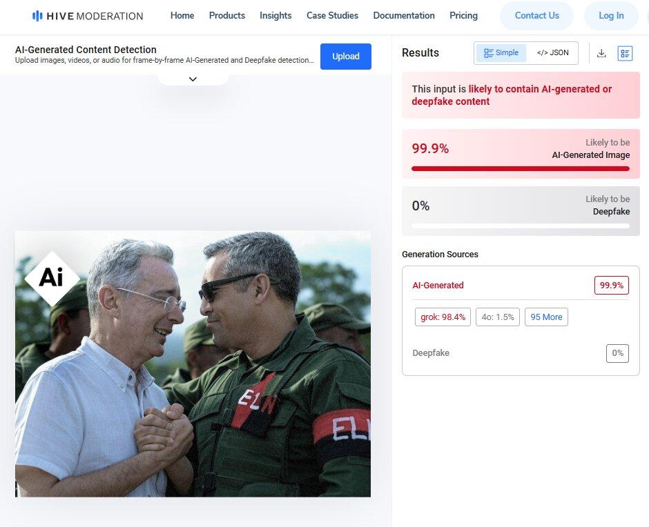 Una foto del expresidente colombiano Álvaro Uribe con un miembro del ELN fue creada con IA
