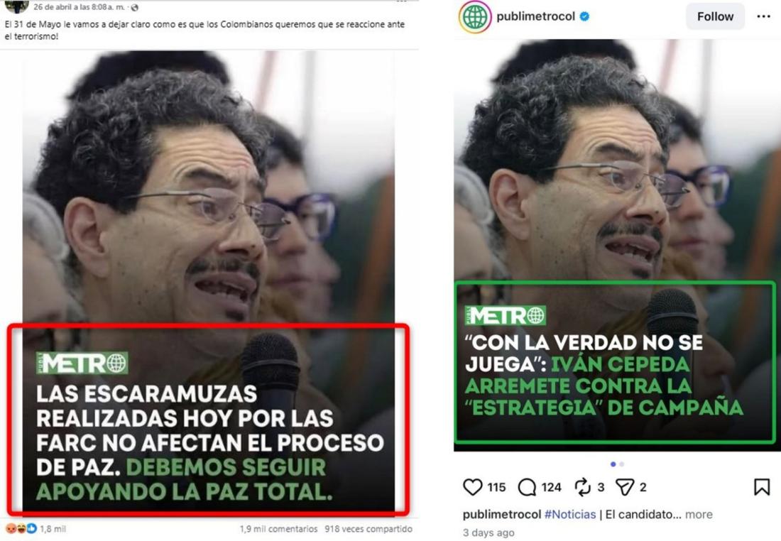Placa atribuida a Publimetro en la que Iván Cepeda llama “escaramuzas” a ataques rebeldes es falsa