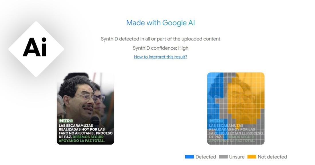 El detector de inteligencia artificial de Google, SynthID, confirmó que la imagen fue manipulada con la tecnología de la compañía.