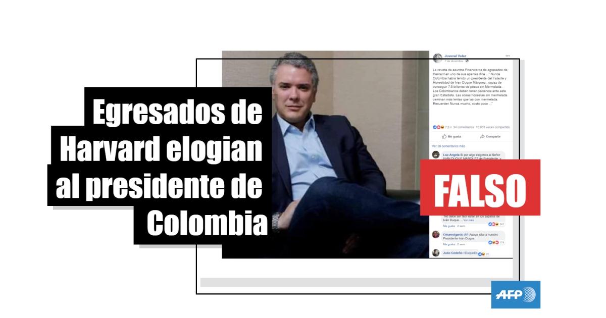 ¿Egresados de Harvard elogian al presidente de Colombia? Falso