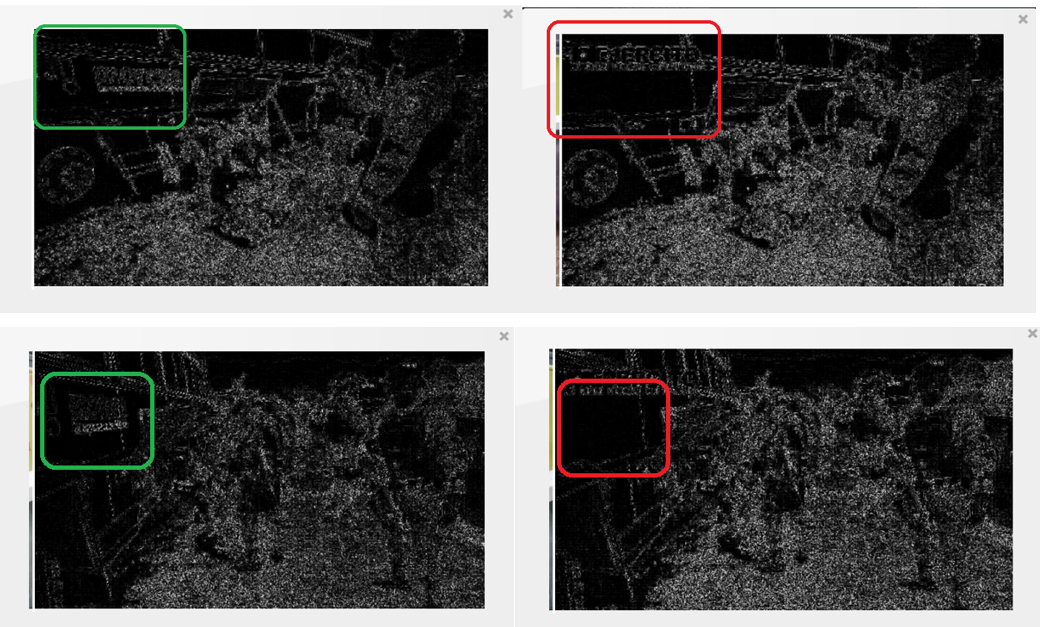Así, mientras que en las imágenes difundidas por la Sedena en WhatsApp (izquierda) aparece “ruido” (una mezcla de pixeles claros y oscuros) donde va el logo de Morena, en las fotos difundidas en las redes sociales de Sedena se detecta un rectángulo negro uniforme.