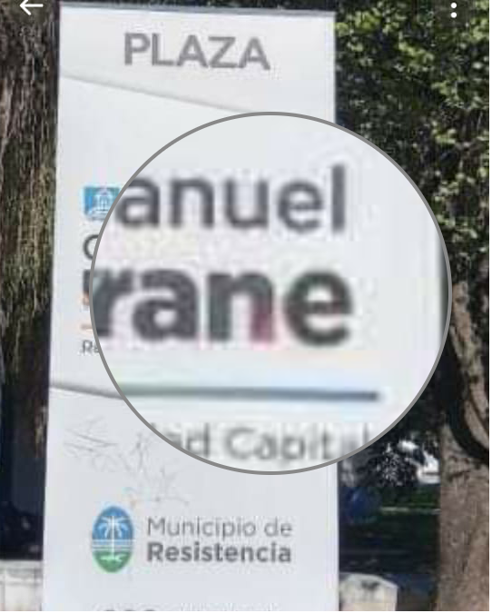 El cartel “Plaza Gral. Manuel Belgrane” en Resistencia, Argentina, es un fotomontaje