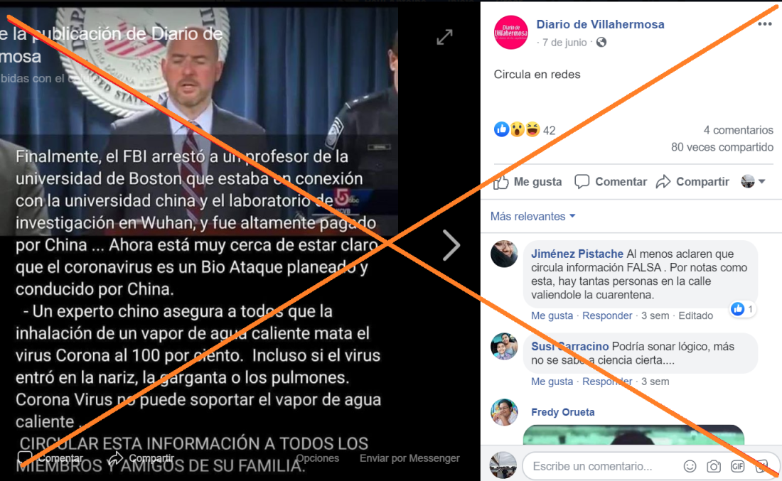 El contenido viralizado continúa: “Un experto chino asegura a todos que la inhalación de un vapor de agua caliente mata el virus Corona al 100 por ciento. Incluso si el virus entró en la nariz, la garganta o los pulmones. Corona Virus no puede soportar el vapor de agua caliente”.