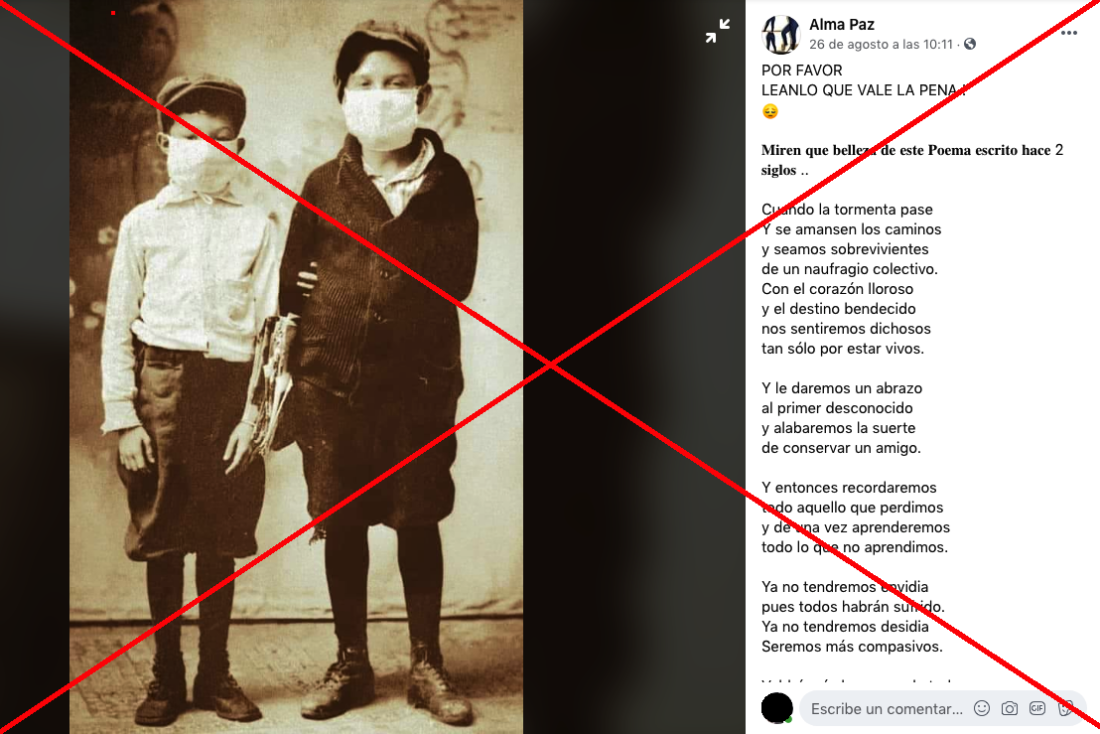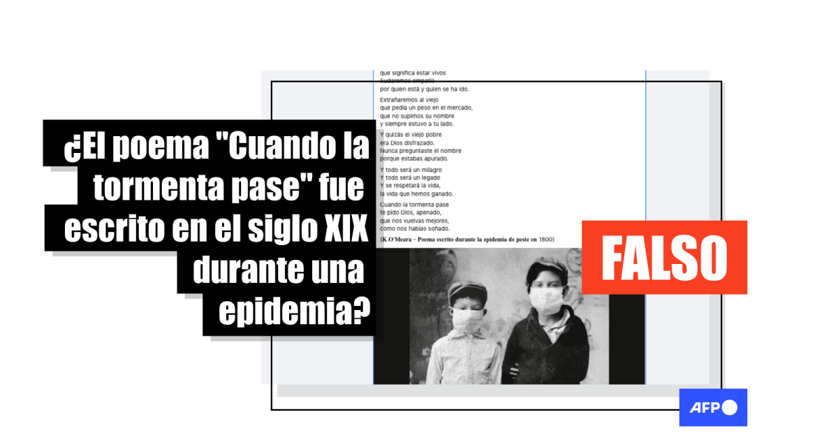 En abril pasado AFP Factual verificó “En tiempos de pandemia”, encontrando que el parecido entre los nombres Catherine O’Meara -autora del poema- y Kathleen O’Meara -escritora decimonónica- pudo haber estado en el origen de la confusión sobre la autoría.