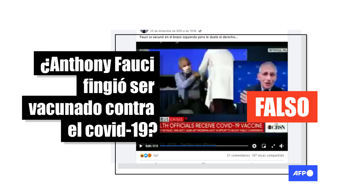 “Fauci se vacunó en el brazo izquierdo pero le duele el derecho…”, se lee en una publicación en Facebook que pone en duda que Anthony Fauci, director del Instituto Nacional de Alergias y Enfermedades Infecciosas (NIAID) de Estados Unidos, haya recibido la vacuna contra el covid-19. Como “prueba” se lo muestra en un video posterior en el que habla sobre la inyección mientras se toca el brazo derecho, cuando la vacuna le fue colocada en el izquierdo.