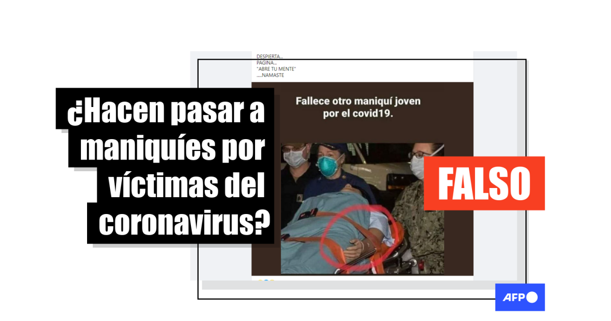 “Me duelen las muertes de los maniquíes por el covid”, dicen las primeras publicaciones encontradas en español, mientras que otros usuarios comparten la imagen con la leyenda “fallece otro maniquí joven por el covid19”. Varios otros insinúan que se miente o manipula la información: "MUERE UN MANIQUI POR "CIRCOVID" !!!”. “Pobre maniquí...... Como nos manipulan”, dice esta entrada, mientras esta otra señala: “SE ESTÁ SIENDO INSOSTENIBLE LA MENTIRA”.