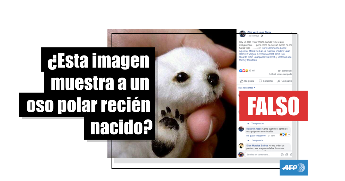AFP Factual mostró vía internet esta imagen al científico Anatoly Kochnev, especialista del Instituto de Problemas Biológicos del Norte en Rusia, quien confirmó que no es un oso polar recién nacido, sino que “se trata de un simple peluche”.