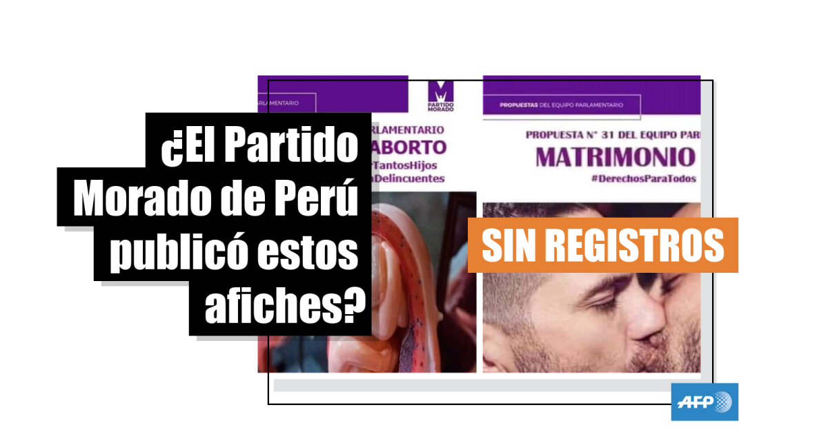 El Partido Morado de Perú está a favor del aborto y del matrimonio igualitario, pero no hay registros de que los afiches sean de su autoría