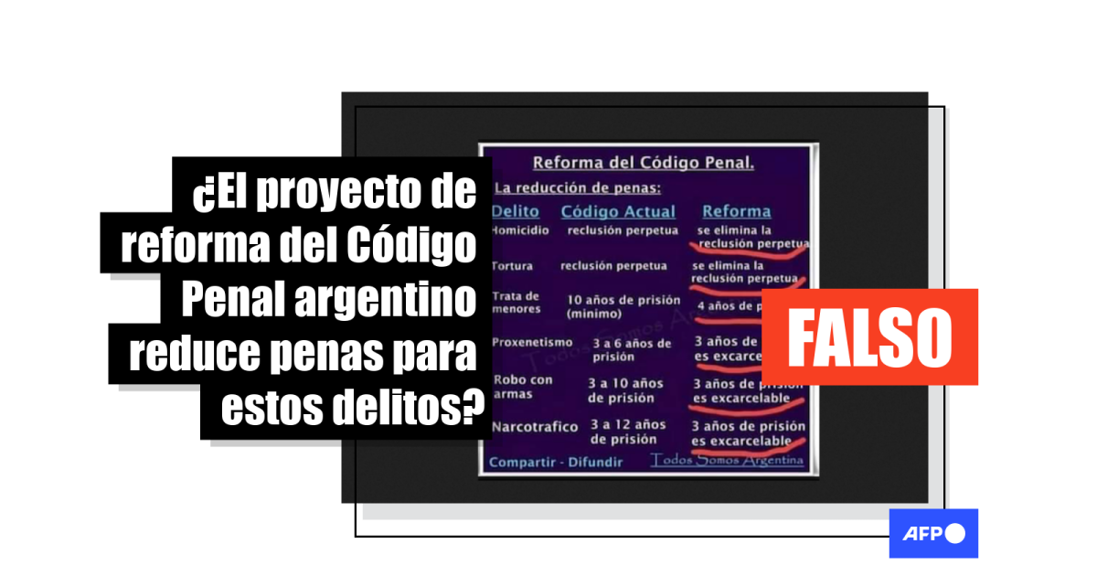 El proyecto para renovar el Código Penal, en elaboración desde la gestión del expresidente Mauricio Macri (2015-2019) y en tratamiento en el Senado desde mediados de 2019, aún no se ha convertido en ley y no contempla las reducciones de penas descriptas en el meme que se ha viralizado en redes.