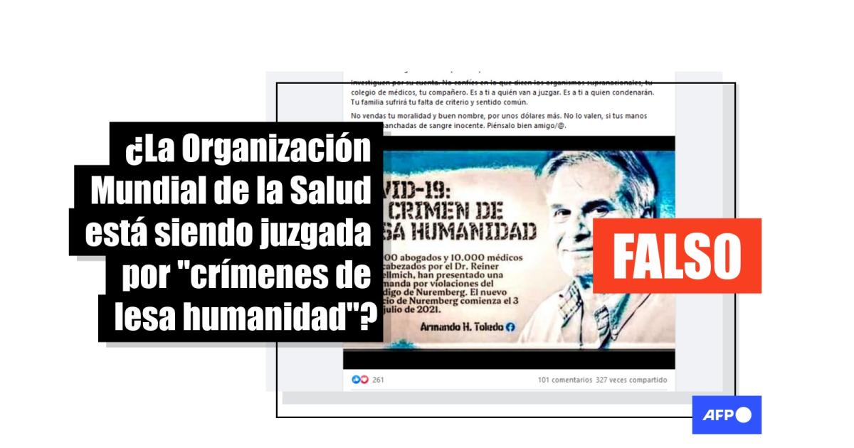 Búsquedas dentro del organismo y en medios de comunicación no llevaron a ningún registro de que la OMS haya sido procesada, se hayan presentado cargos en su contra o esté a la espera inminente de un juicio por “crímenes de lesa humanidad”.