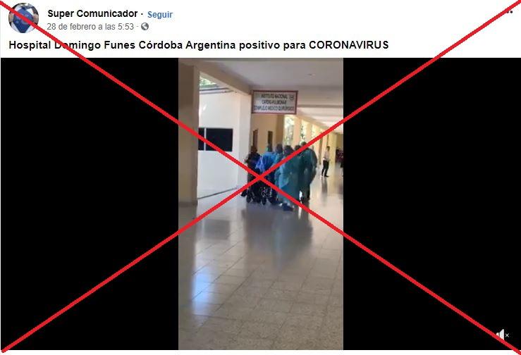 “Me llegó este video, dicen que es el hospital domingo funes, Sta maria de punilla córdoba #coronavirusargentina #coronavirus [sic]”, señala un tuit con el video que ha sido visualizado más de 17 mil veces y que circula desde el 27 de febrero pasado.