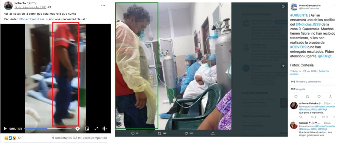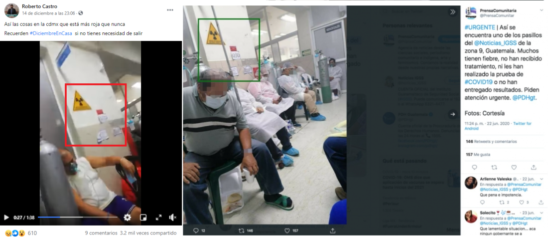 También se encontró un enlace al sitio web “El Vigilante”, que el 25 de junio de 2020 publicó la misma secuencia con el título “Intensivo del IGSS en la zona 9 se encuentra saturado”, también ubicando la escena en Guatemala.