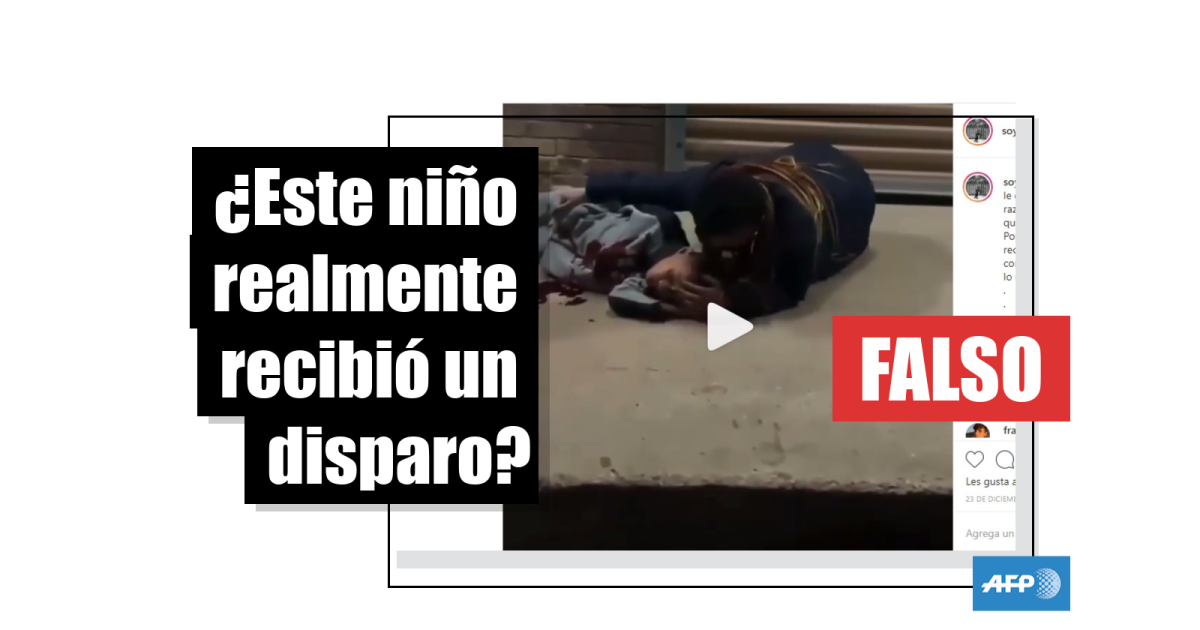 En el video que contiene, una mujer llora y grita “oh mi Dios, mi bebé” en inglés frente su hijo, que supuestamente sangra a causa de una herida de bala.