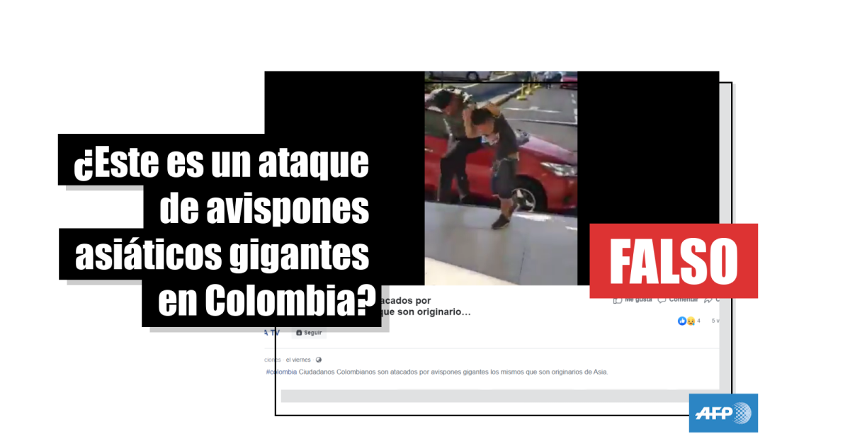 “Ciudadanos colombianos con atacados por avispones gigantes los mismos que son originarios de Asia”, señala una publicación en Facebook con un video que circula desde el 13 de mayo pasado.