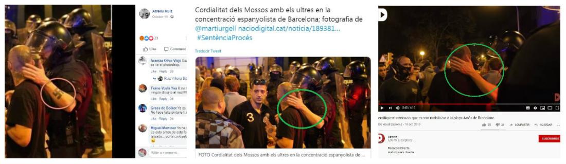 En la fotografía original, el agente de los Mossos no tiene tatuada esa esvástica