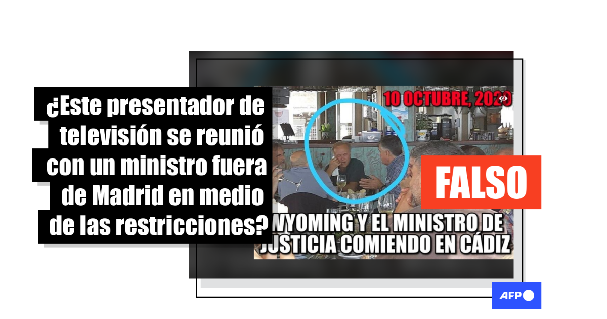Preguntado por la presencia del ministro de Justicia en Cádiz el 9 de octubre, el gabinete de Comunicación del ministerio indicó a AFP Factual que su titular no se encontraba en la ciudad y que no participó en la reunión que se ha difundido en redes sociales.