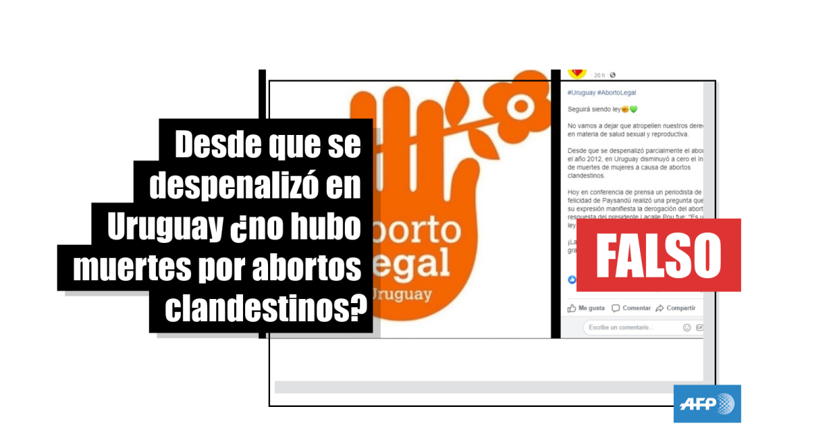 “No vamos a dejar que atropellen nuestros derechos en materia de salud sexual y reproductiva. Desde que se despenalizó parcialmente el aborto en el año 2012, en Uruguay disminuyó a cero el índice de muertes de mujeres a causa de abortos clandestinos”, dice una publicación en Facebook del 4 de mayo de 2020 que ha sido compartida más de 2.700 veces. También circularon afirmaciones similares en Twitter (1, 2, 3).