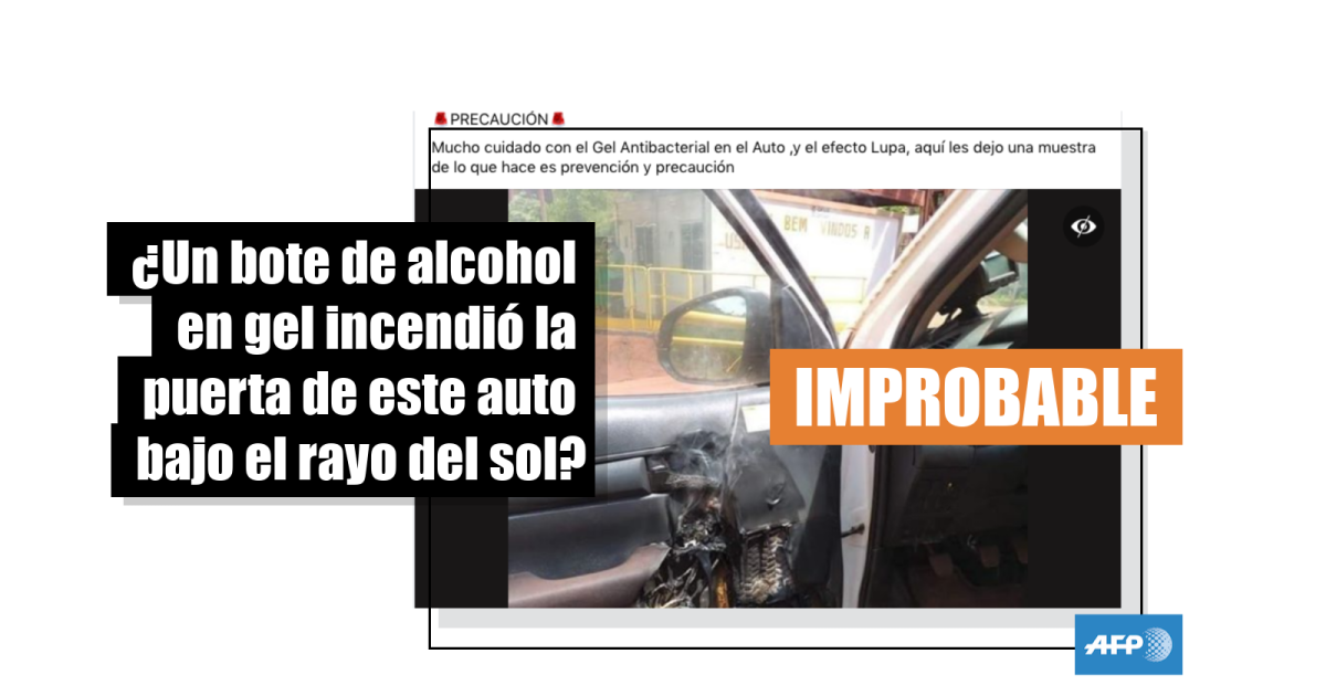 En conclusión, aunque no se pudo localizar el origen de la fotografía es “muy poco probable” que una botella de alcohol en gel se incendie dentro de un auto bajo el rayo del sol, de acuerdo con una especialista entrevistada por la AFP y a la información oficial vigente.