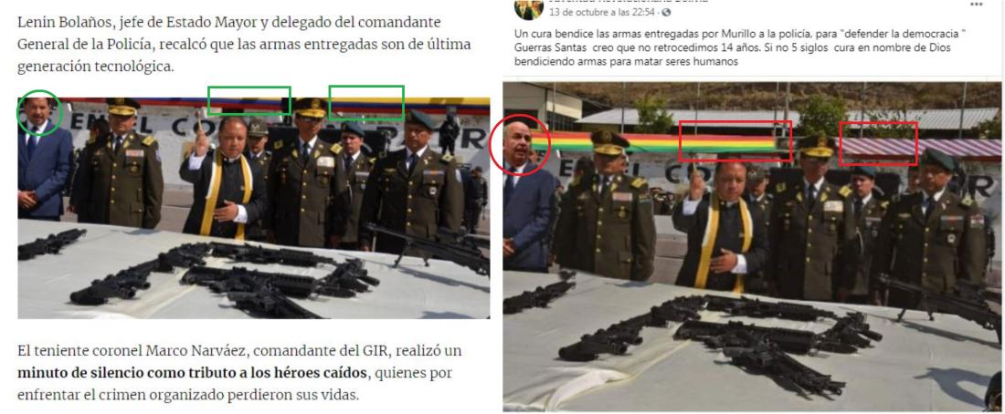En conclusión, es falso que el ministro de Gobierno boliviano, Arturo Murillo, participó de una ceremonia de bendición de armas previo a las elecciones de 2020. La foto que circula es un montaje, la original se tomó en 2018 en Ecuador.