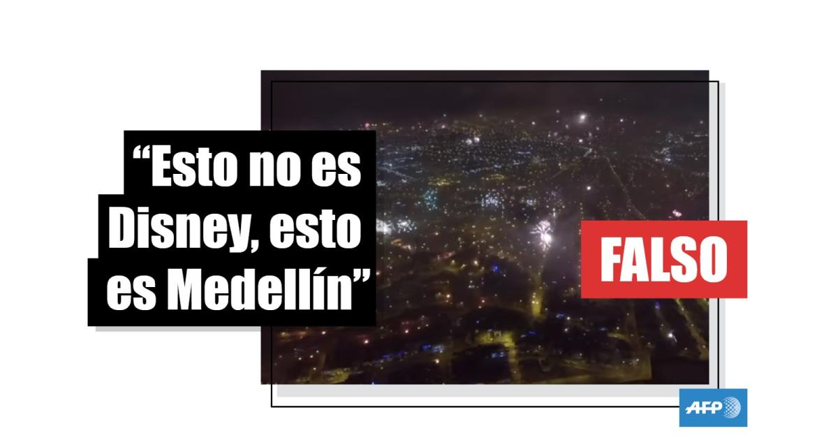 “Esto no es Disney, esto es Medallo (Medellín)”, afirma la usuaria de Facebook que publicó el video el 1 diciembre de este año. Ese día, la ciudad colombiana celebra “La Alborada”, una fiesta popular para conmemorar con fuegos pirotécnicos la llegada de diciembre.